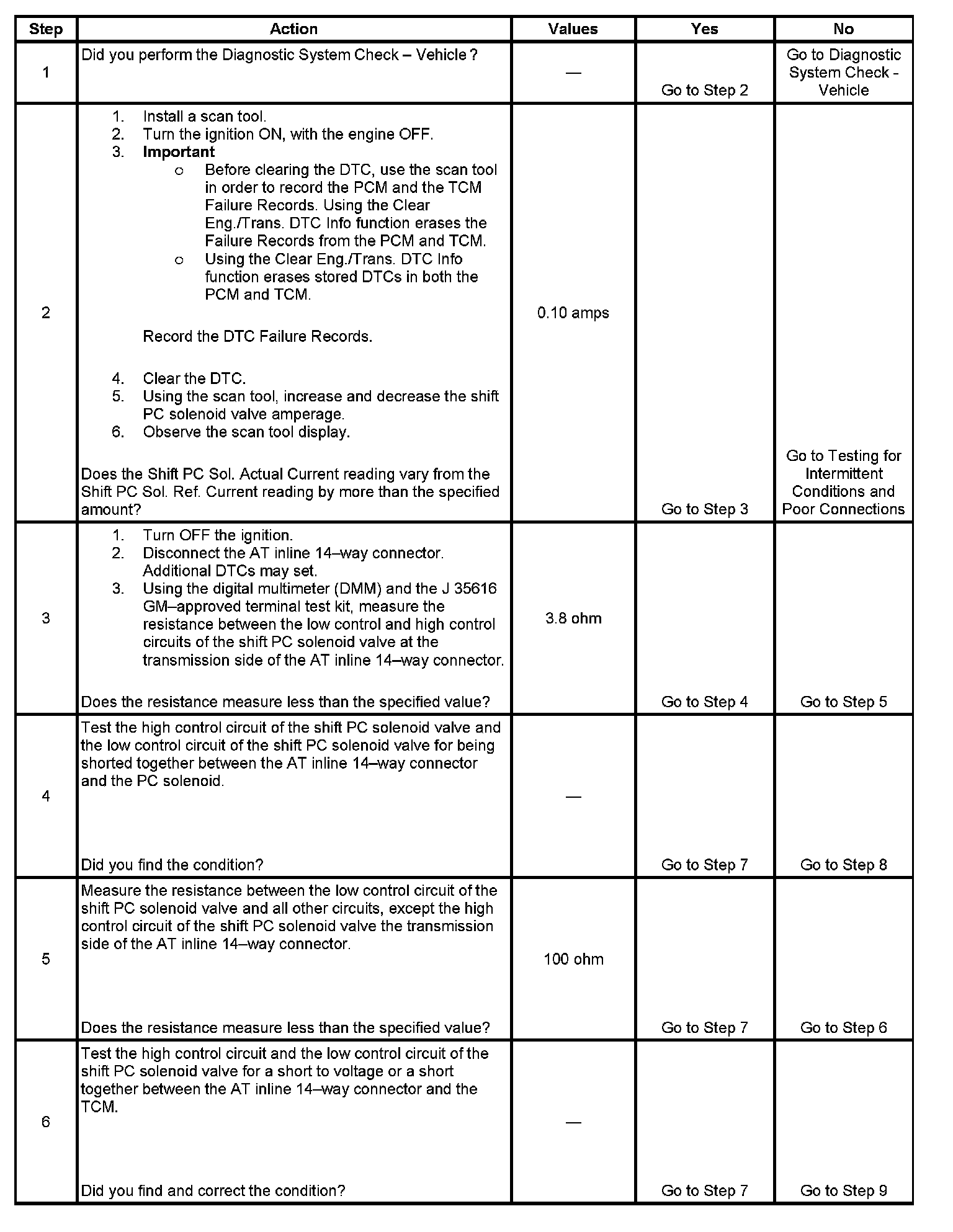 2. This step verifies the ability of the TCM to command the shift PC solenoid valve.