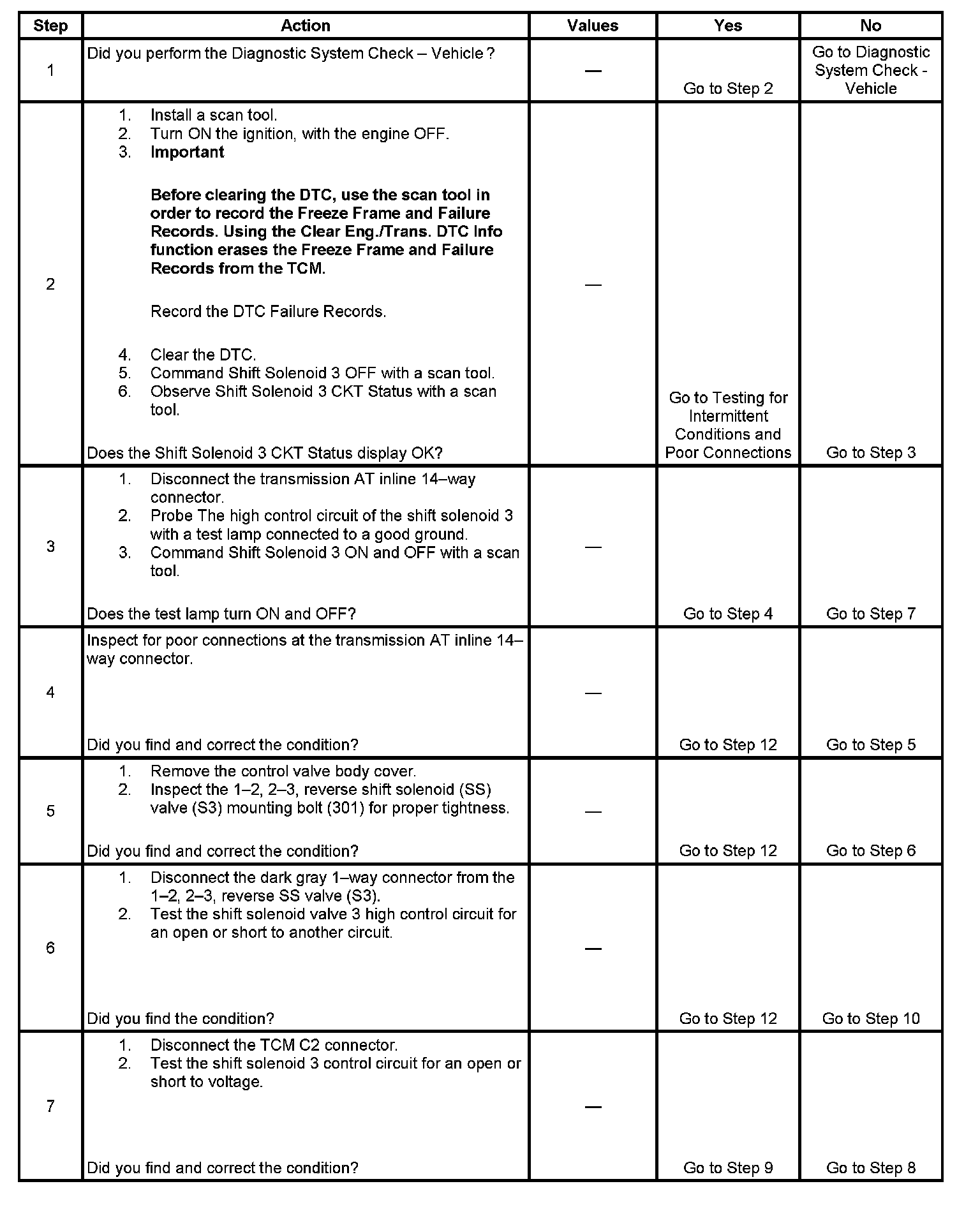 ^ The TCM commands shift solenoid 3 OFF.