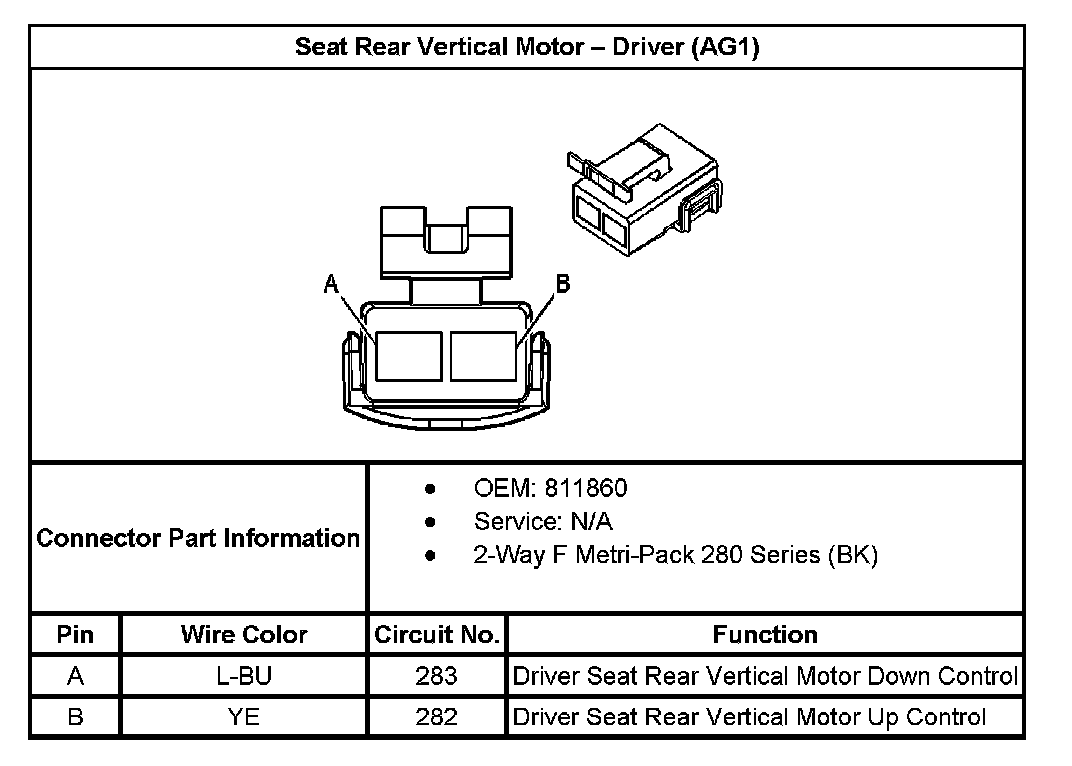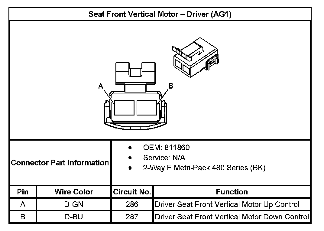 Seat Front Vertical Motor - Driver (with RPO Code AG1):