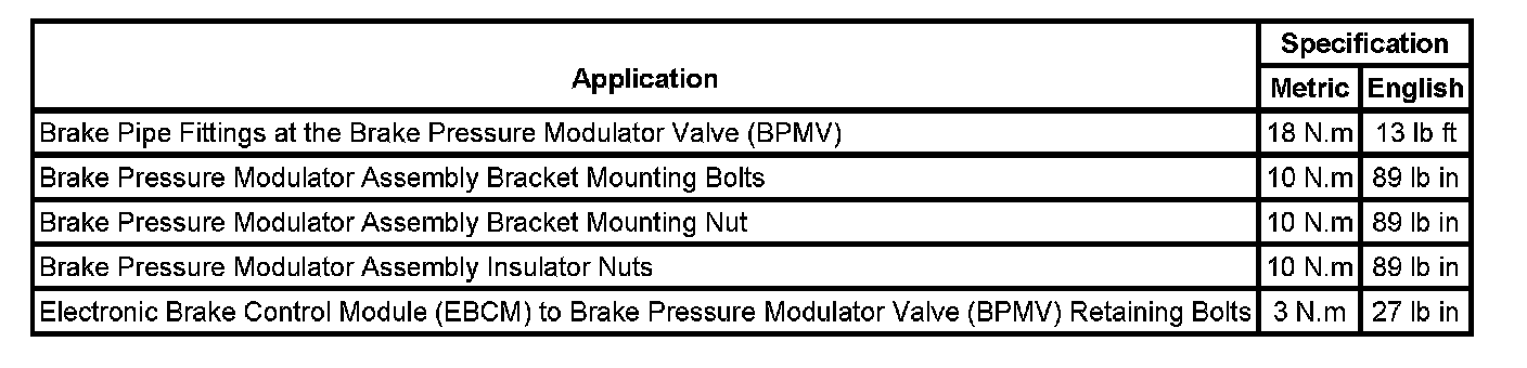 Fastener Tightening Specifications: