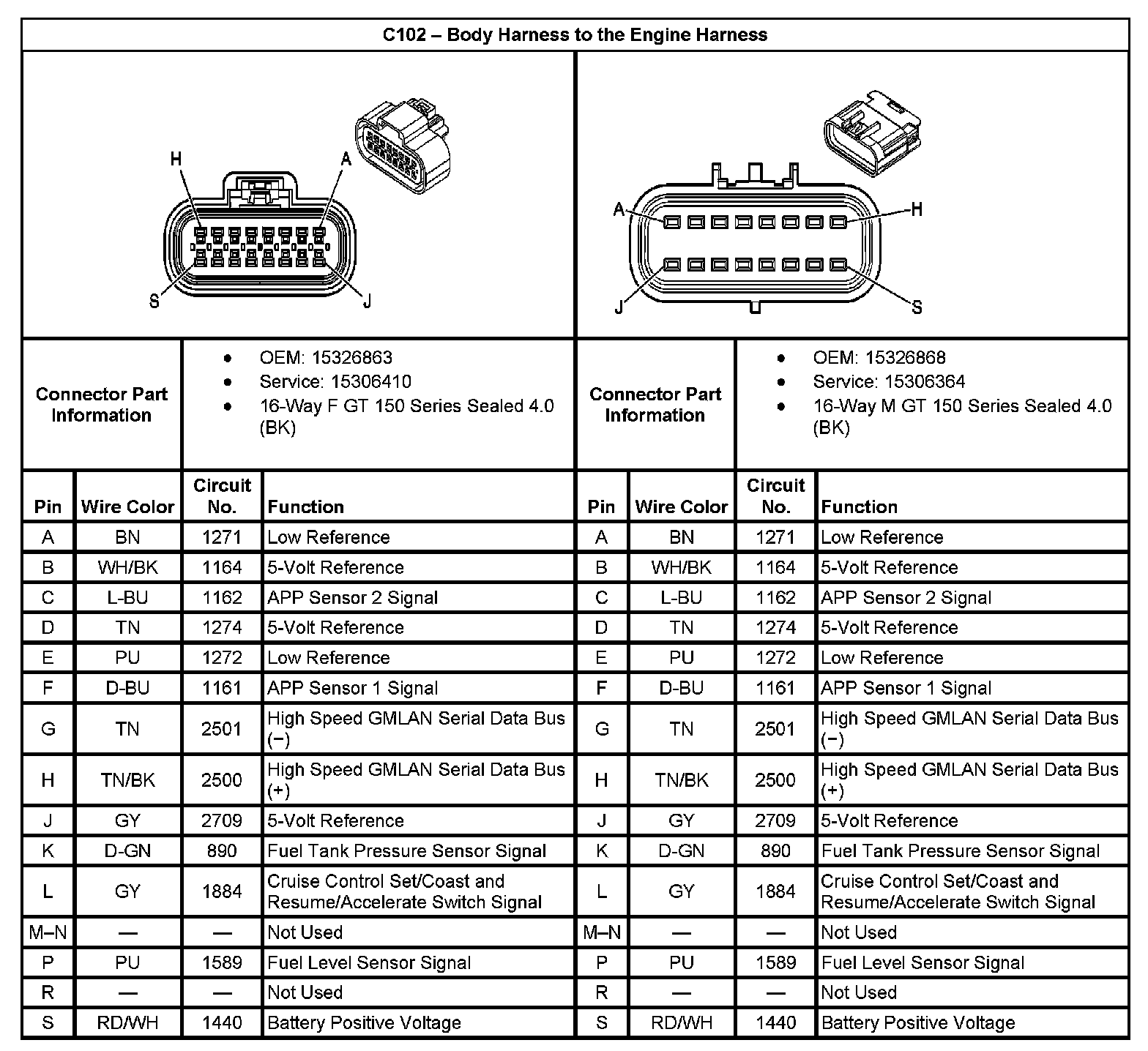 C102 - Body Harness To The Engine Harness: