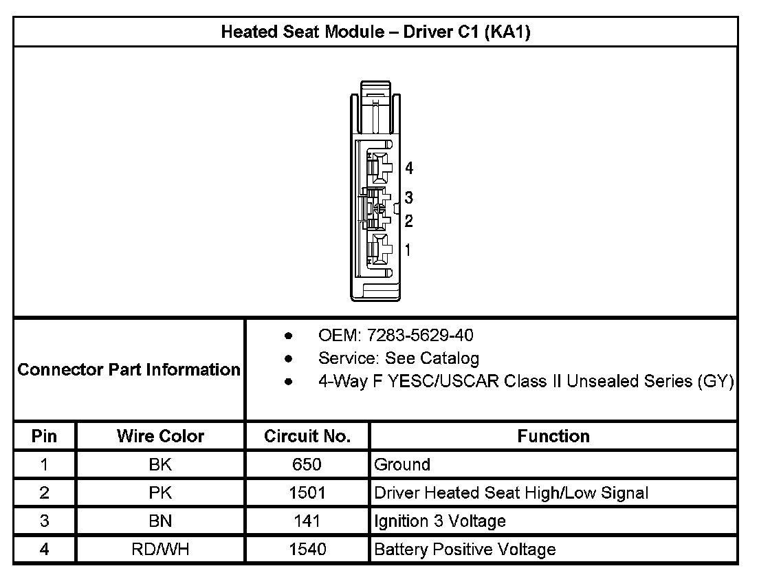 Heated Seat Module - Driver C3 (with RPO Code KA1):