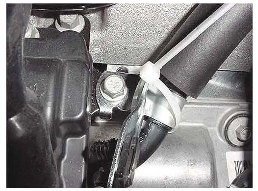 Inspect the fresh air inlet pipe connection to the rear rocker cover. If the inlet pipe has become disconnected from the rear rocker cover reconnect the pipe into the grommet and also into the metal retaining bracket. Use a plastic tie strap to secure the pipe to the retaining bracket as shown above.