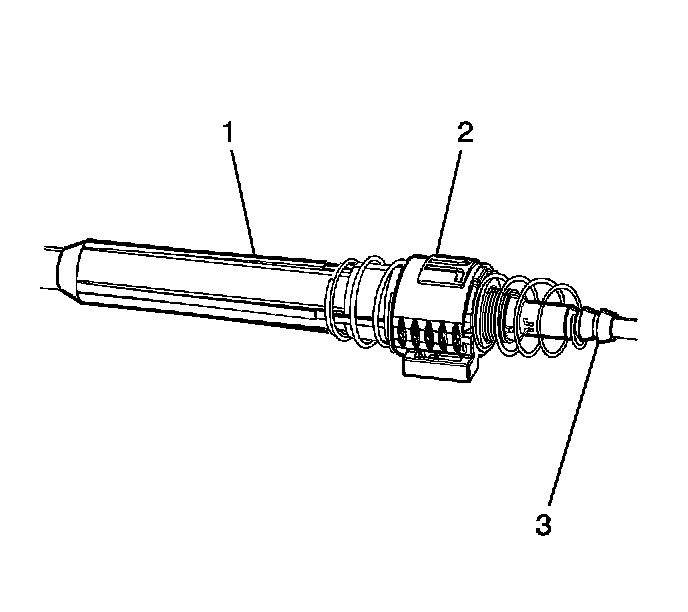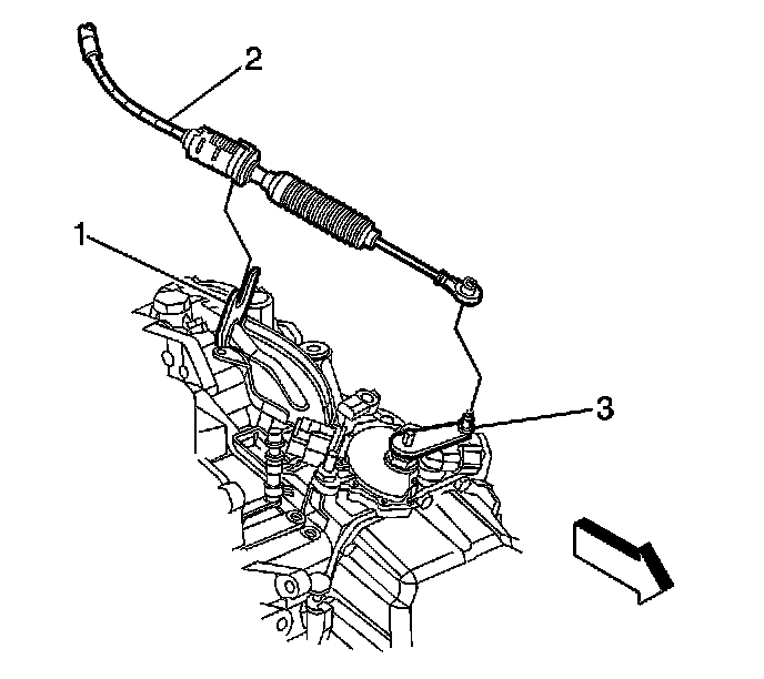 1. Using the J 36346, disconnect the shift control cable (2) from the transaxle range switch lever (3).