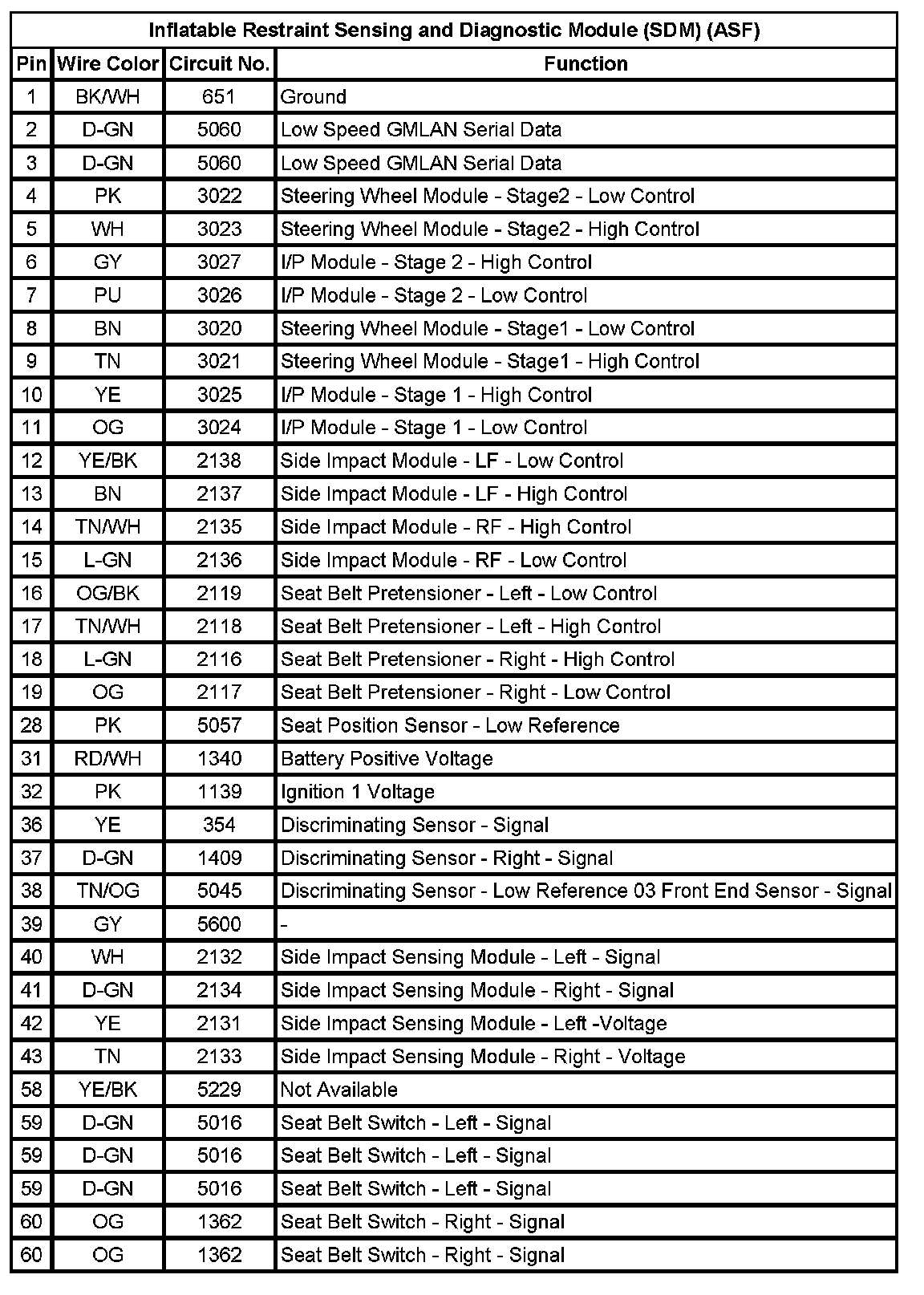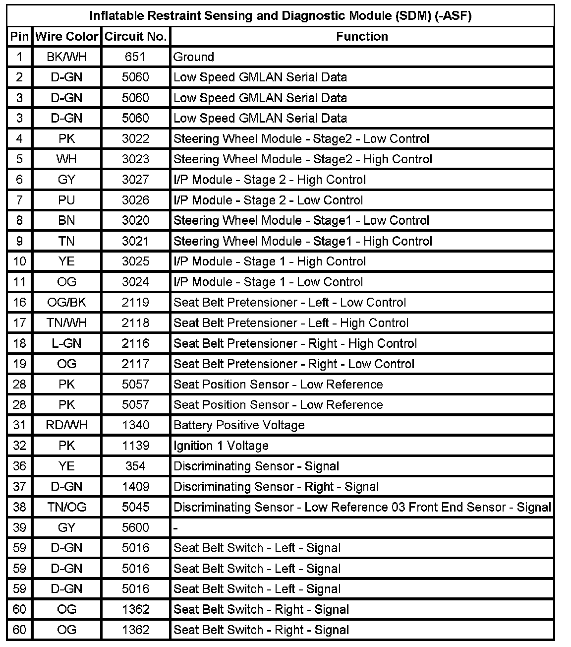Inflatable Restraint Sensing and Diagnostic Module (SDM) (ASF)