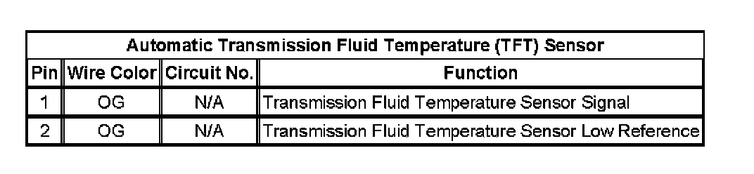 Automatic Transmission Fluid Temperature (TFT) Sensor: