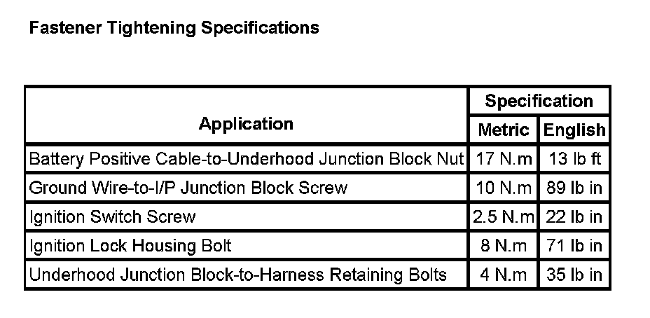 Fastener Tightening Specifications: