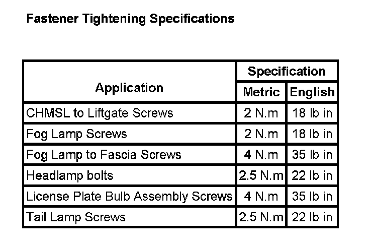 Fastener Tightening Specifications: