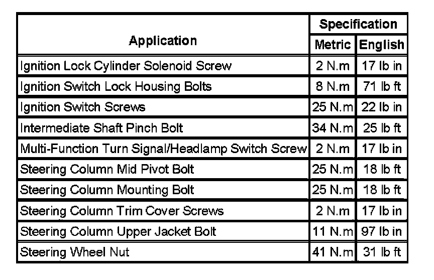 Fastener Tightening Specifications: