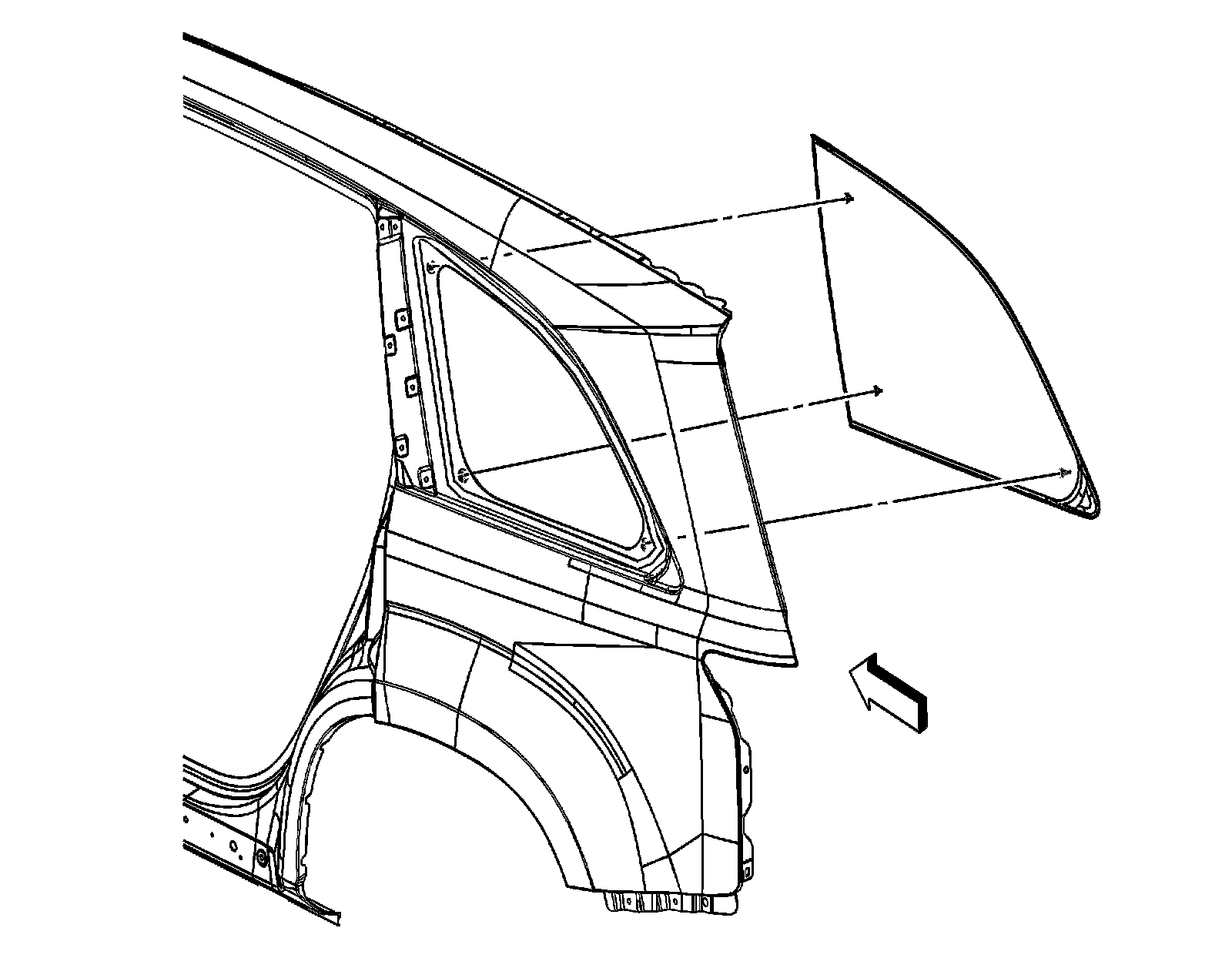 - Use the J 24402-A, J 39032, or equivalent in order to remove the quarter window.