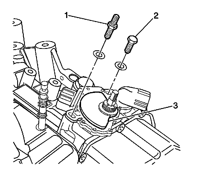 7. Remove the transaxle range switch bolt (2), stud (1), and flat washers.