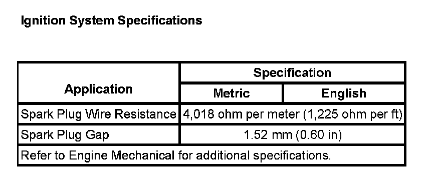 Ignition System Specifications: