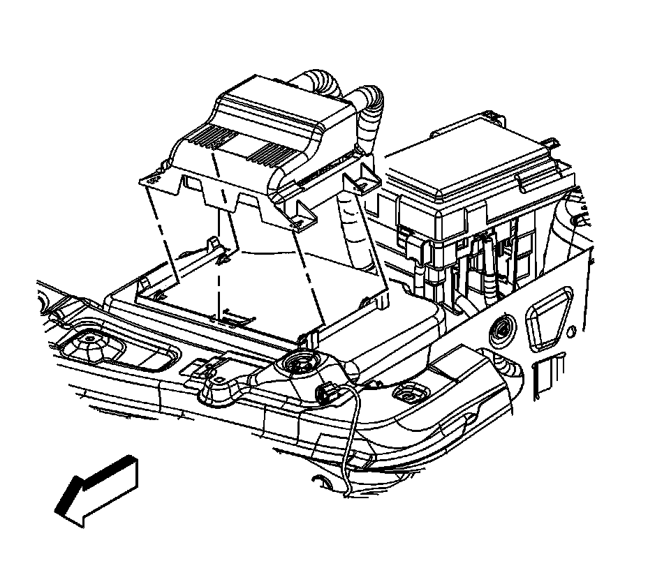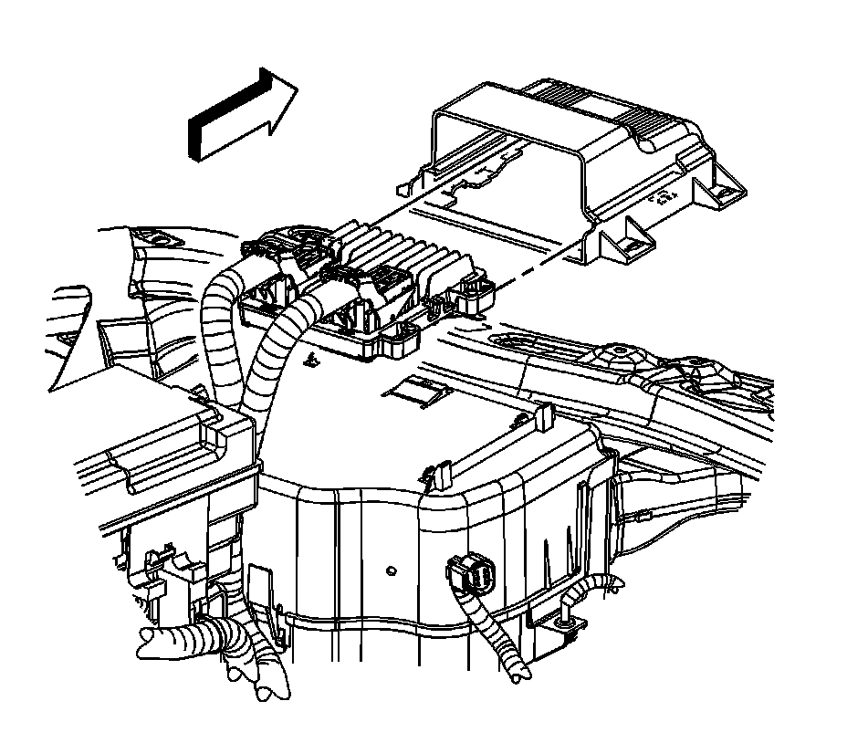 5. Slide the ECM retainer rearward, engaging the retainer to the battery shield.