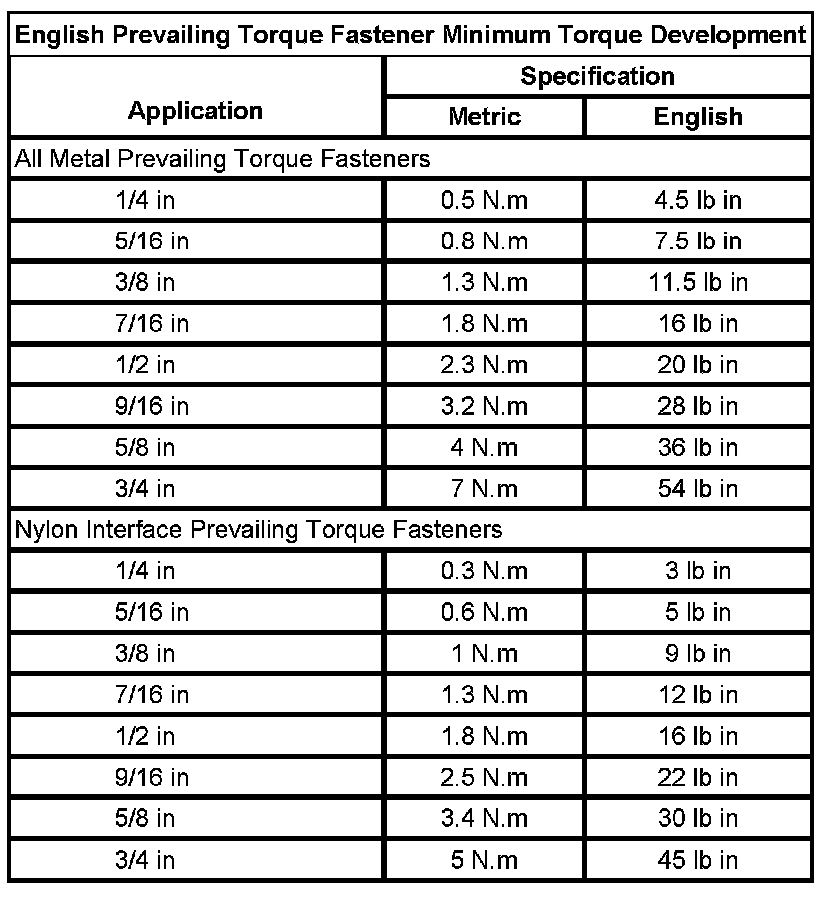 * The fastener develops the specified minimum torque against its counterpart prior to the fastener seating