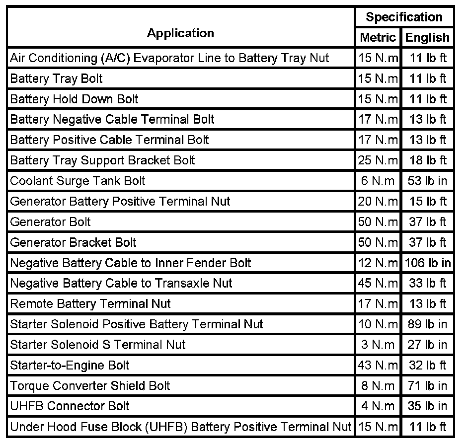 Fastener Tightening Specifications