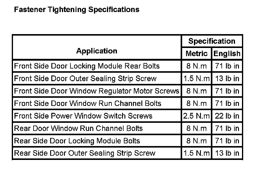 Fastener Tightening Specifications: