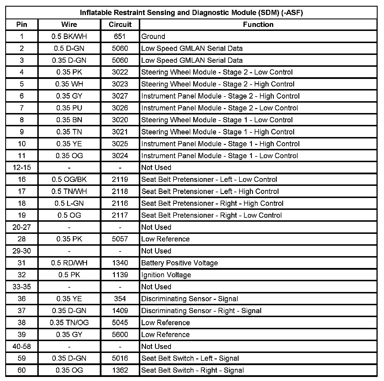 Inflatable Restraint Sensing and Diagnostic Module (SDM) (ASF)