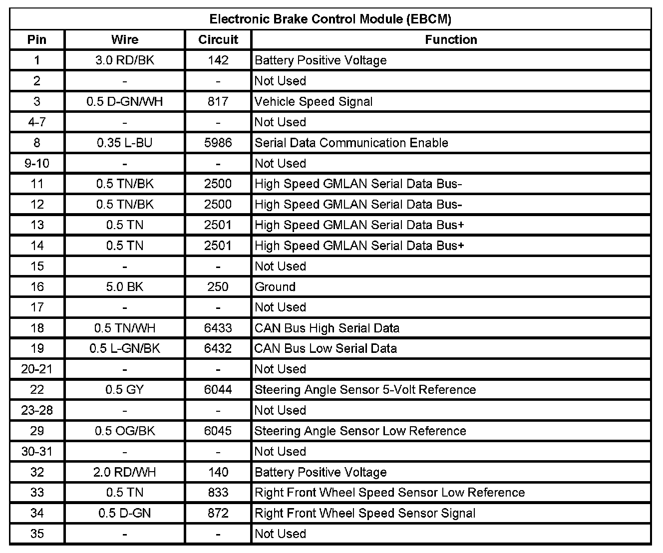 Electronic Brake Control Module (EBCM) (Pin 1 To 35):
