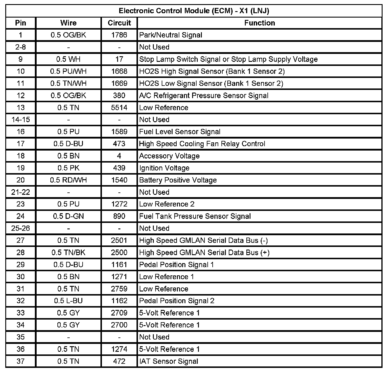 Electronic Control Module (ECM) - X1 (LNJ) (Pin 1 To 37):