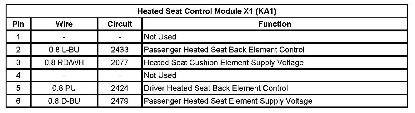 Heated Seat Control Module X1 (KA1)