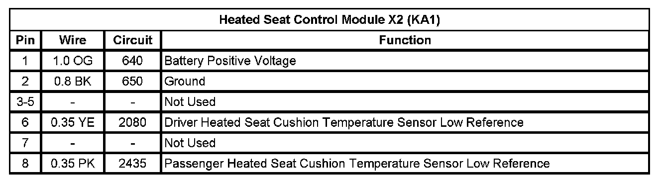 Heated Seat Control Module X2 (KA1)