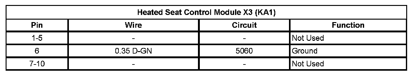 Heated Seat Control Module X3 (KA1)