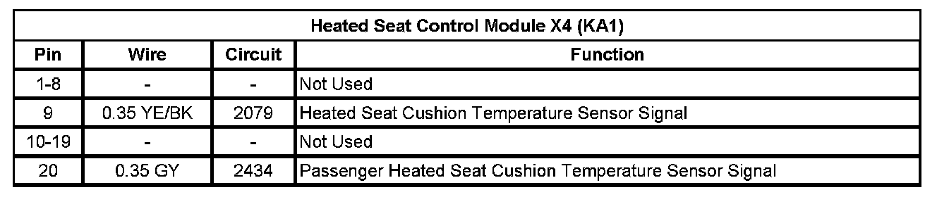 Heated Seat Control Module X4 (KA1)