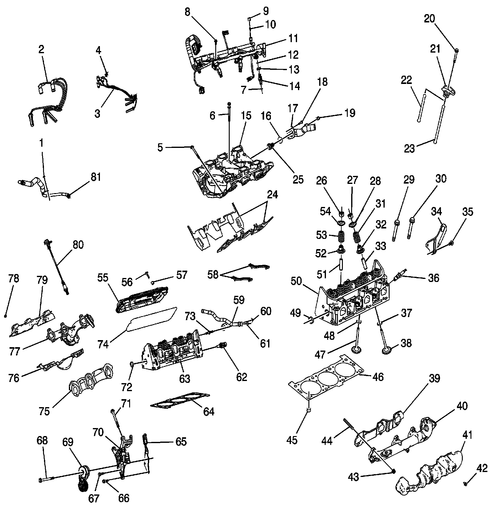 Lower Intake Manifold, Cylinder Head and Components