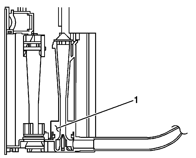 The primary jet pump (1) is located in the primary fuel tank module. Fuel pump flow loss, caused by vapor expulsion in the pump inlet chamber, is diverted to the primary jet pump and the secondary jet pump (2) through a restrictive orifice located on the pump cover. The primary jet pump fills the reservoir of the primary fuel tank module.