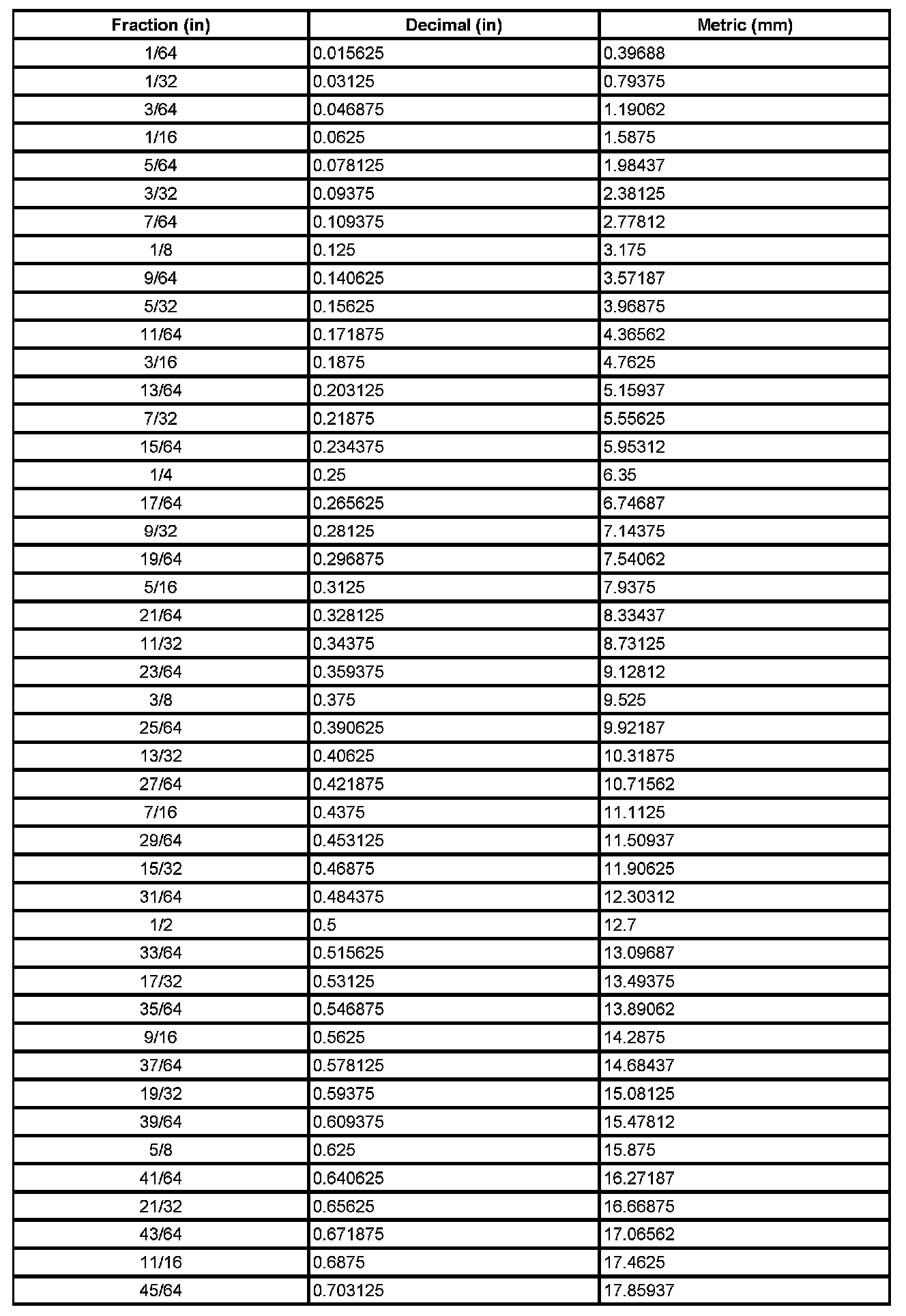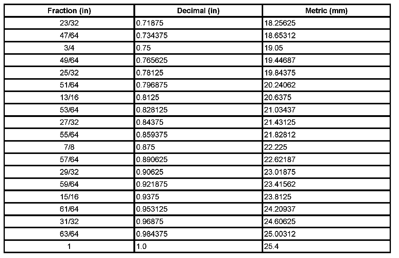 Decimal and Metric Equivalents