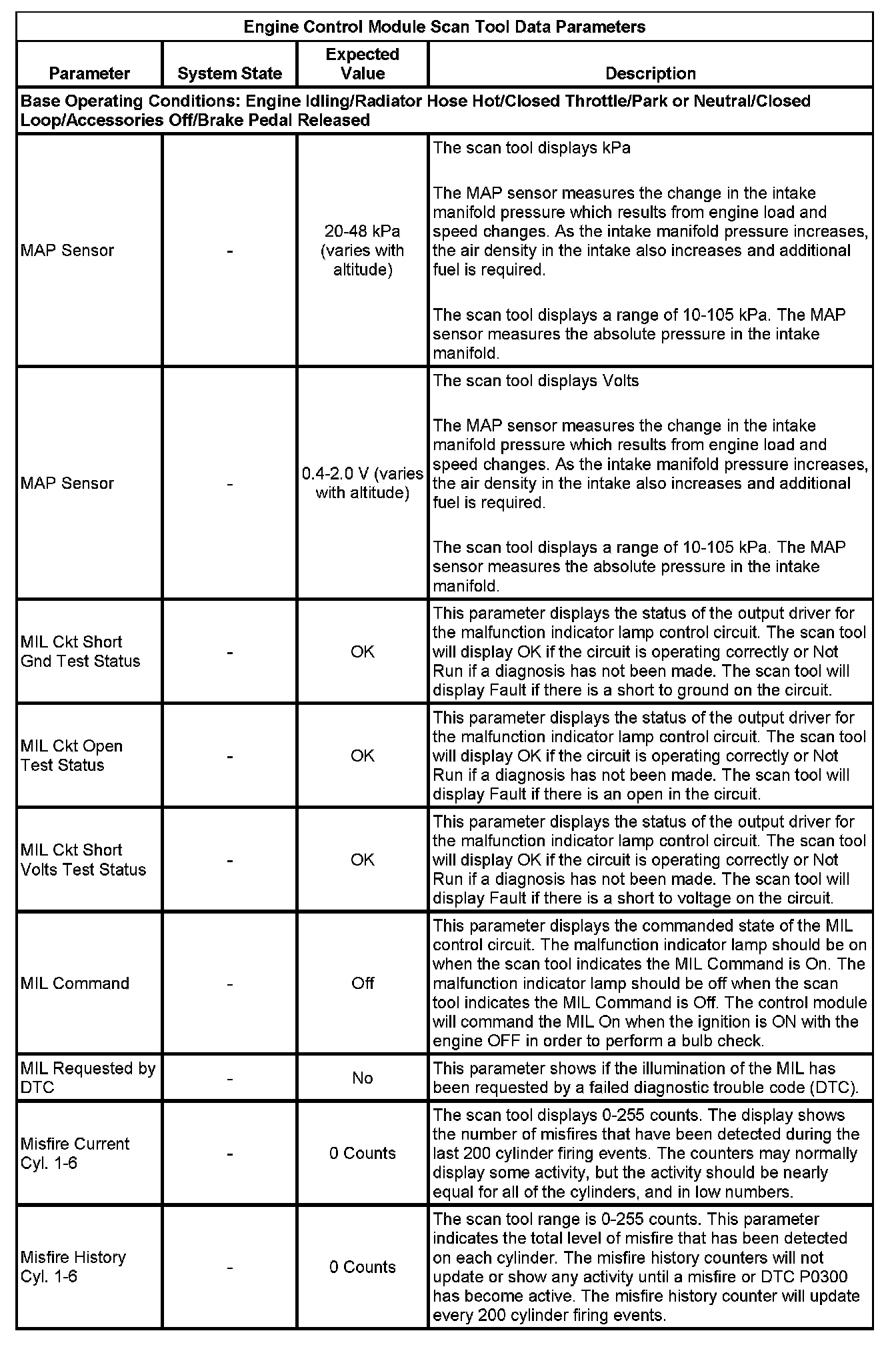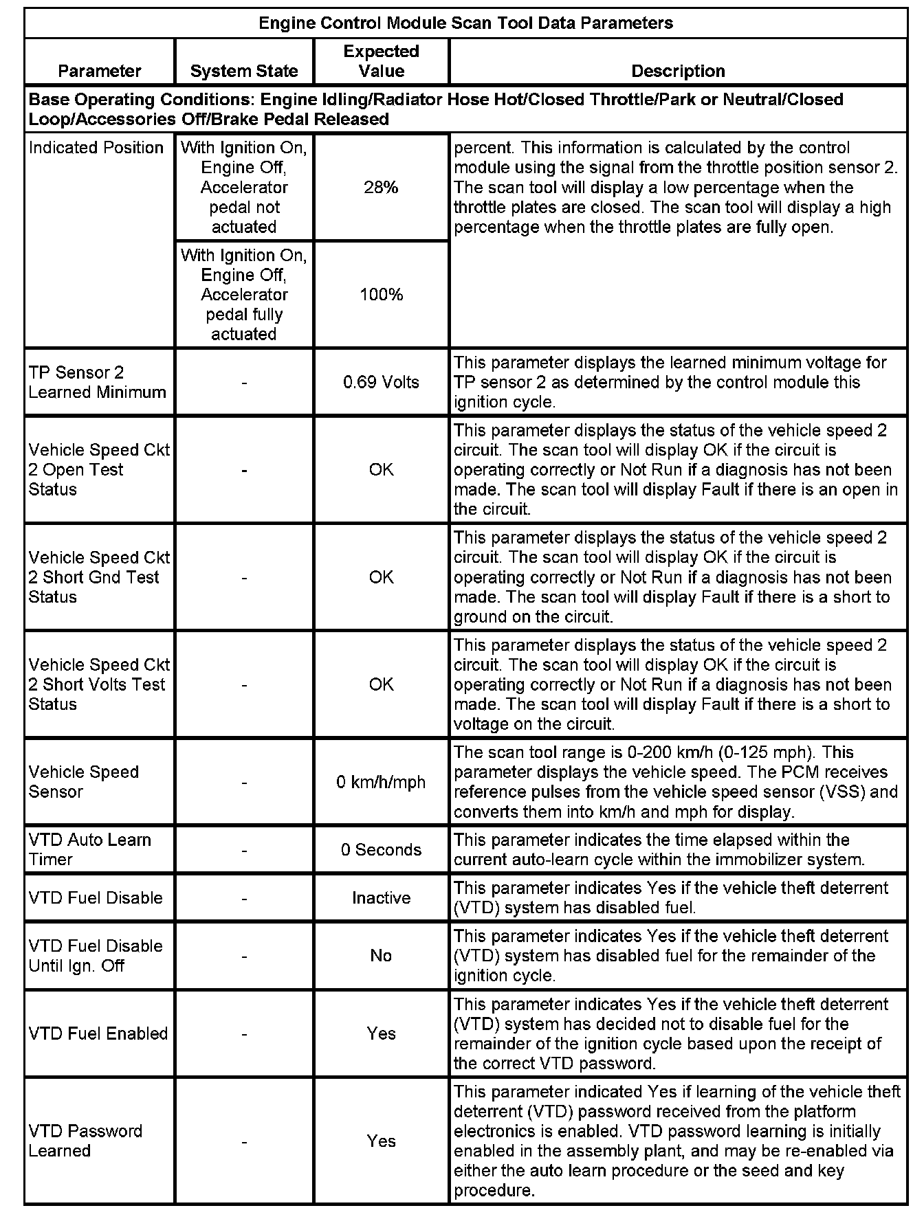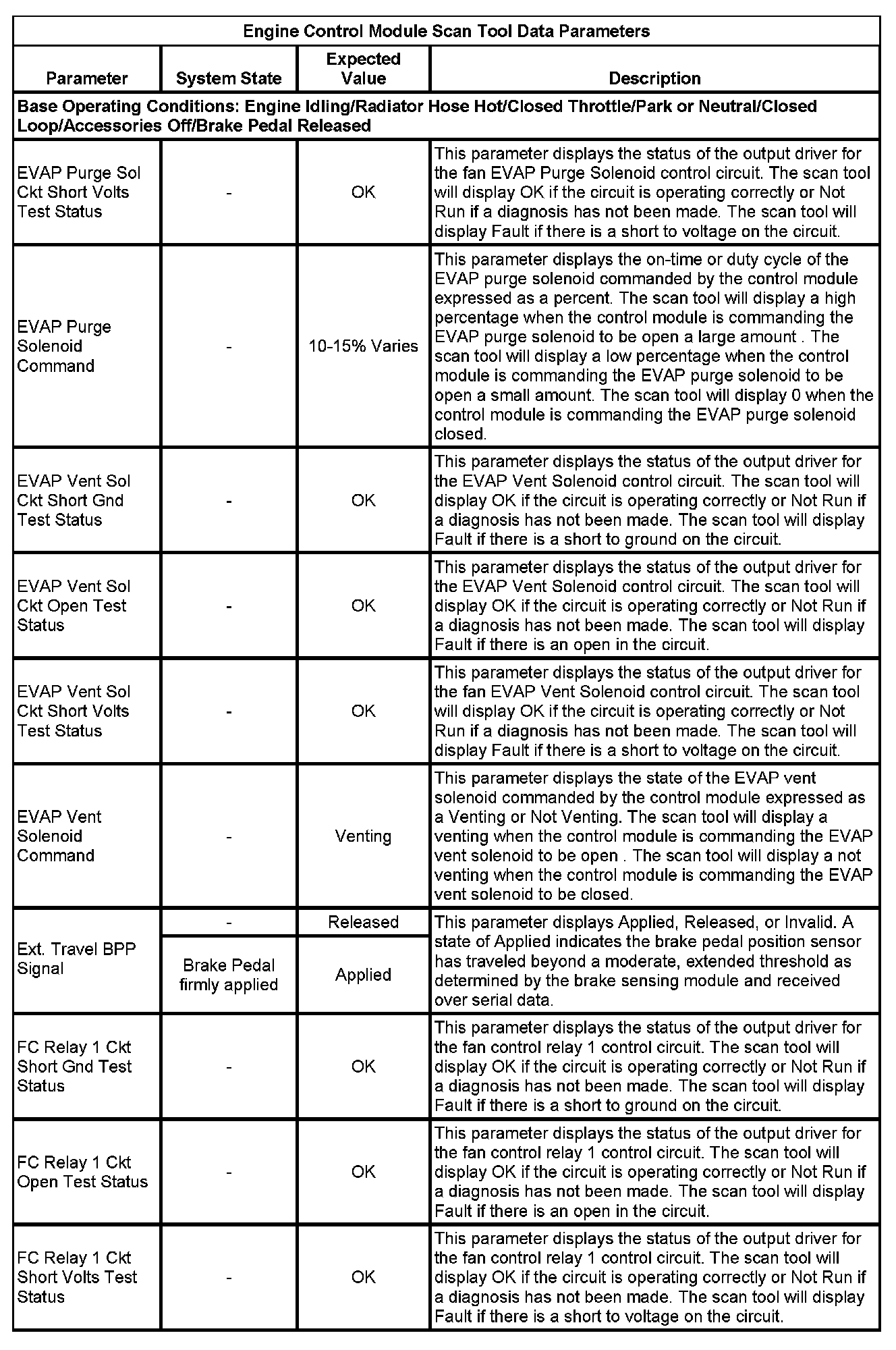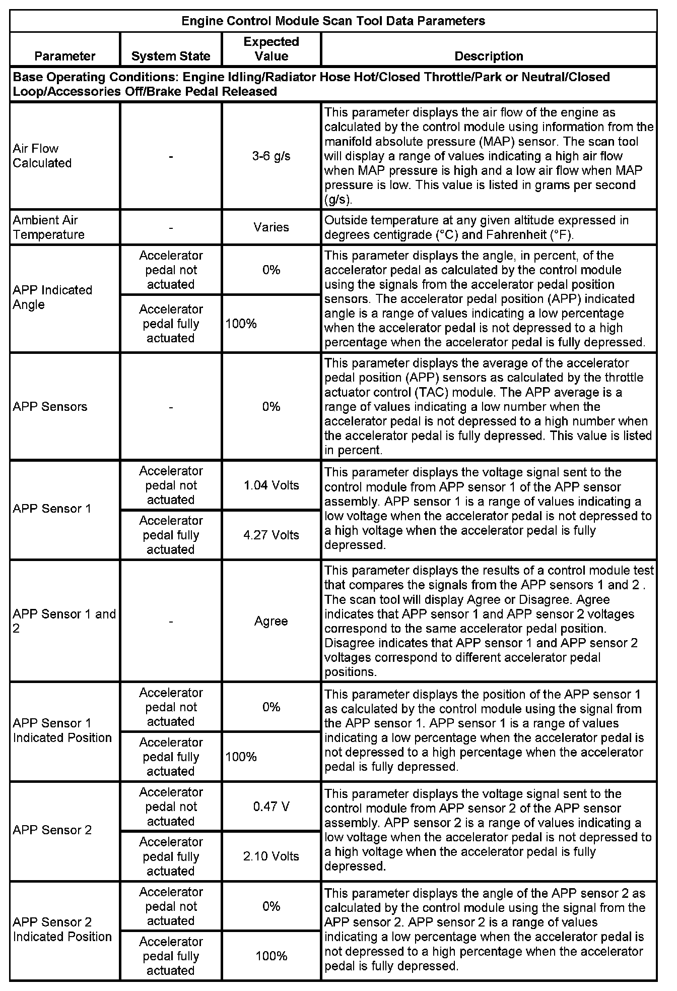 The Engine Control Module Scan Tool Data List contains all engine-related parameters that are available on the scan tool. The list is arranged in alphabetical order. A given parameter may appear in any one of the data lists, and in some cases may appear more than once, or in more than one data list in order to group certain related parameters together.