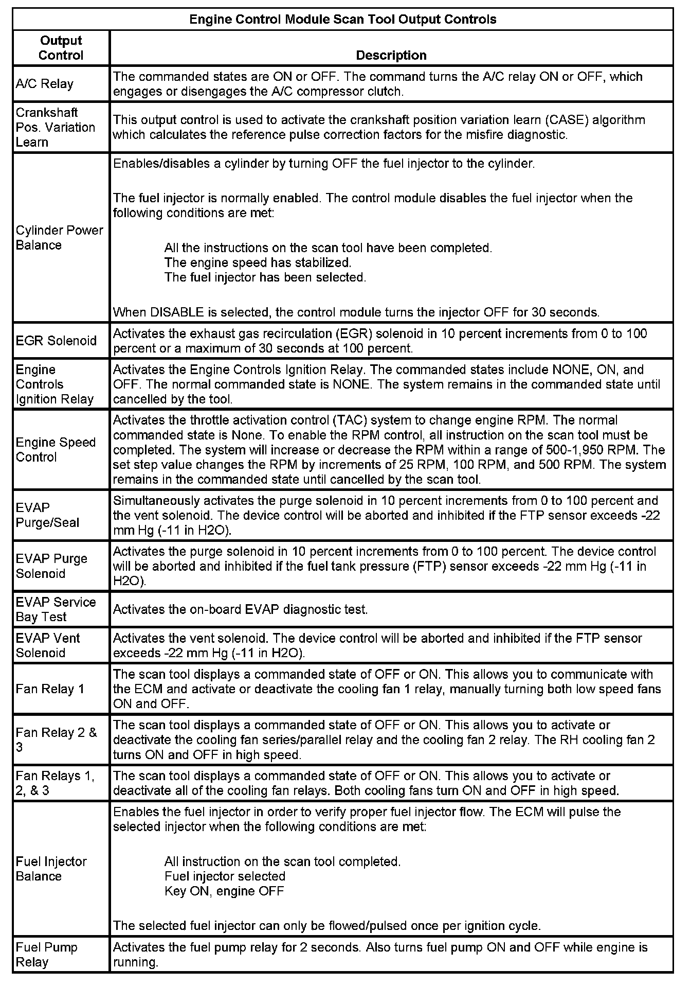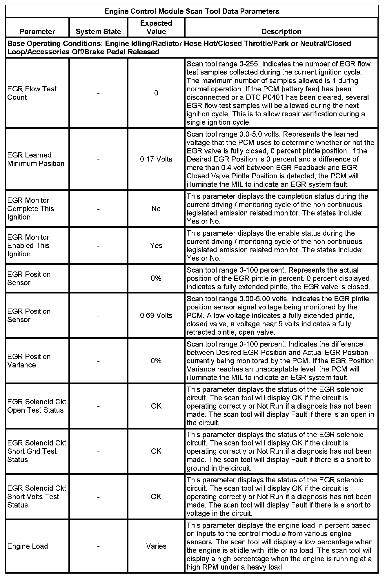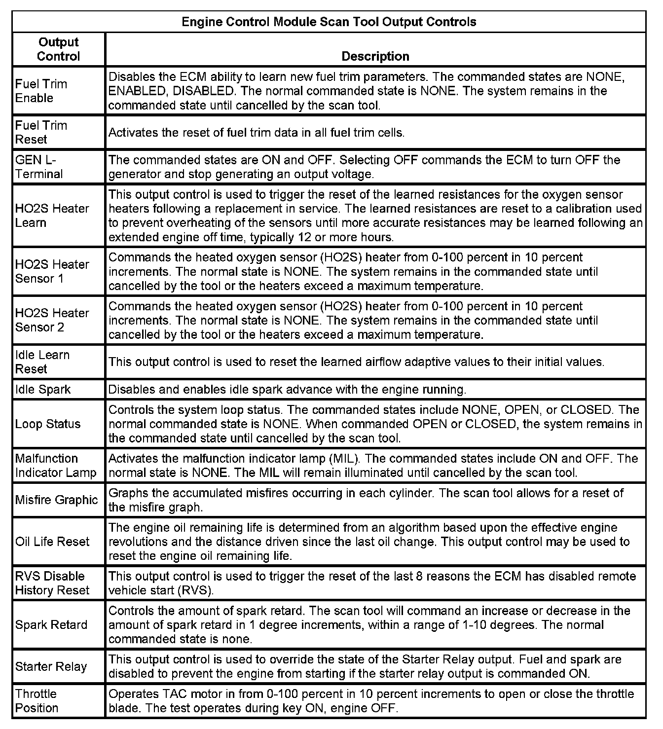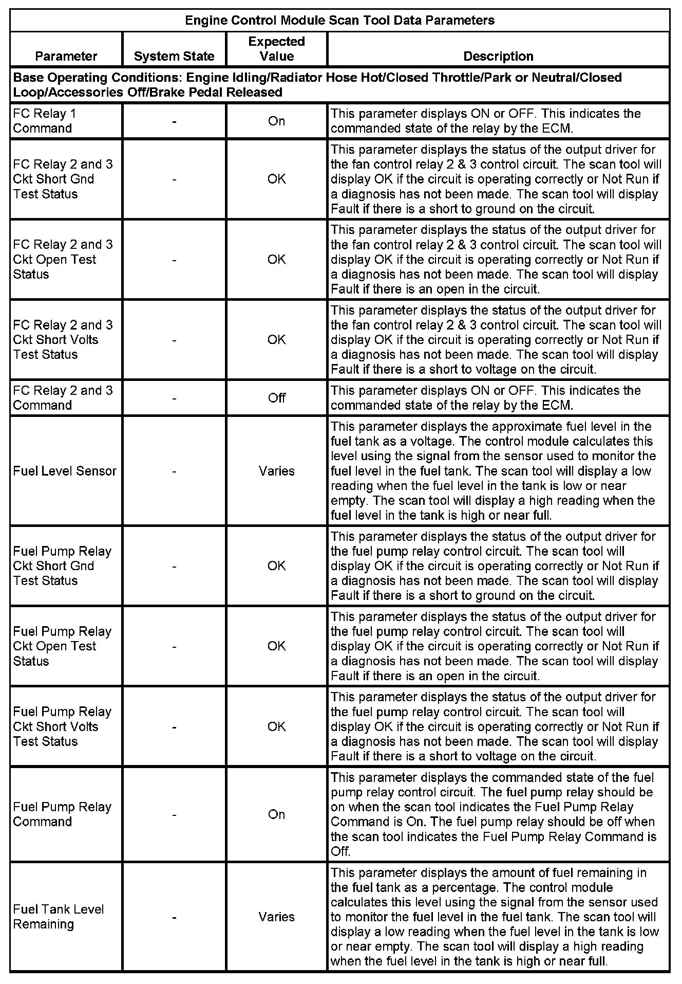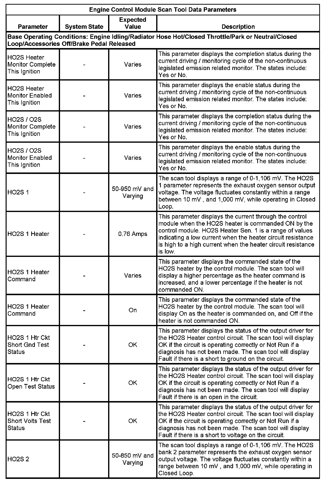 The Engine Control Module Scan Tool Data List contains all engine-related parameters that are available on the scan tool. The list is arranged in alphabetical order. A given parameter may appear in any one of the data lists, and in some cases may appear more than once, or in more than one data list in order to group certain related parameters together.
