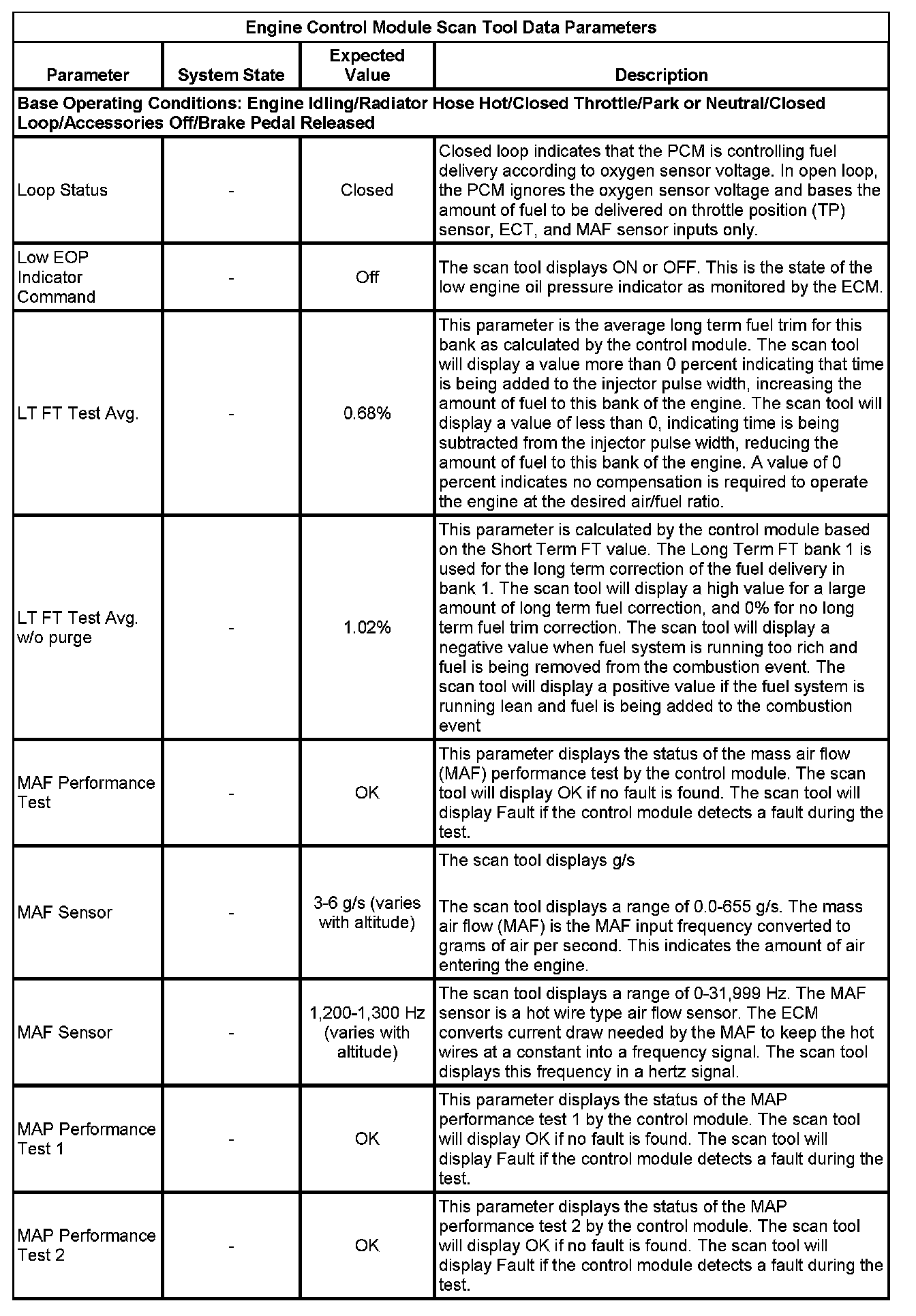The scan tool values from a properly running engine may be used for comparison with the engine you are diagnosing. The Engine Scan Tool Data List represents values that would be seen on a normally running engine.