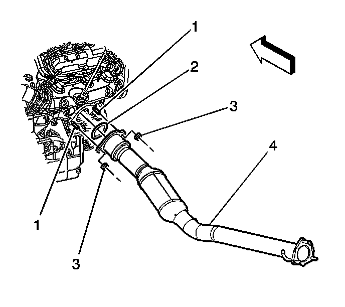 3. Remove the catalytic converter pipe flange to exhaust system pipe flange nuts.