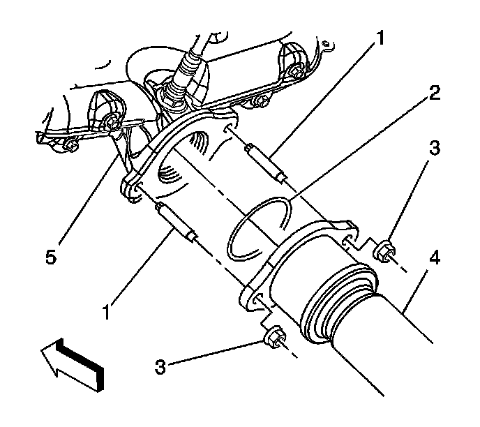 6. Separate the catalytic converter flange from the exhaust manifold and discard the gasket (2).