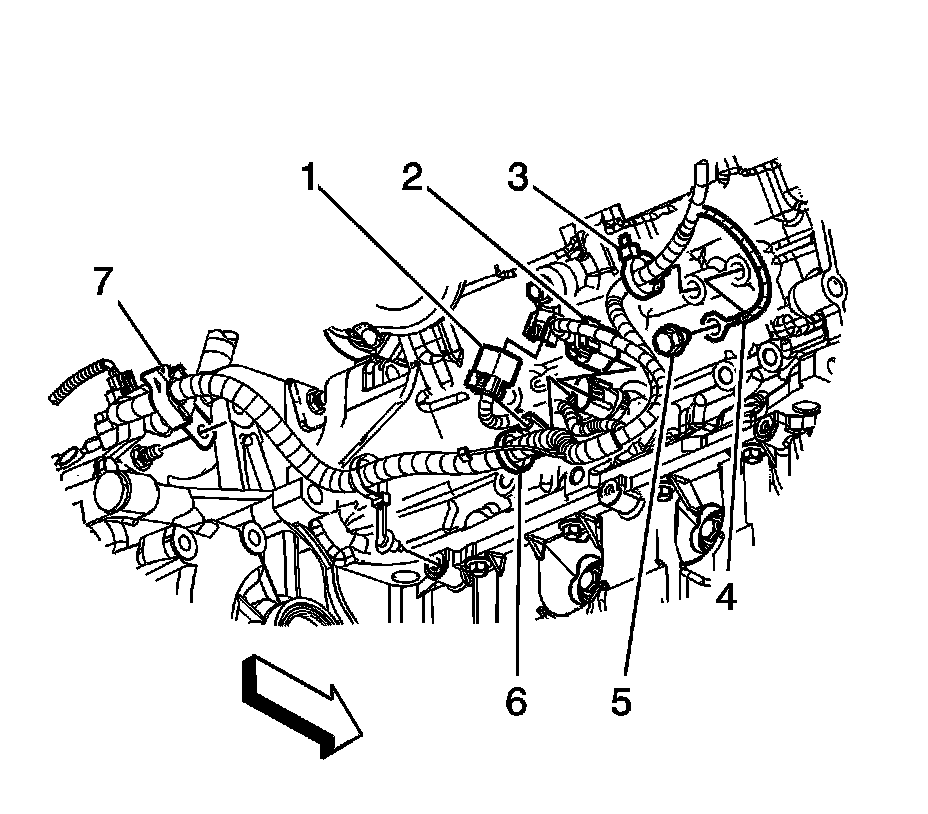2. If equipped with front wheel drive (FWD), disconnect the engine wiring harness electrical connector (1) from the knock sensor.