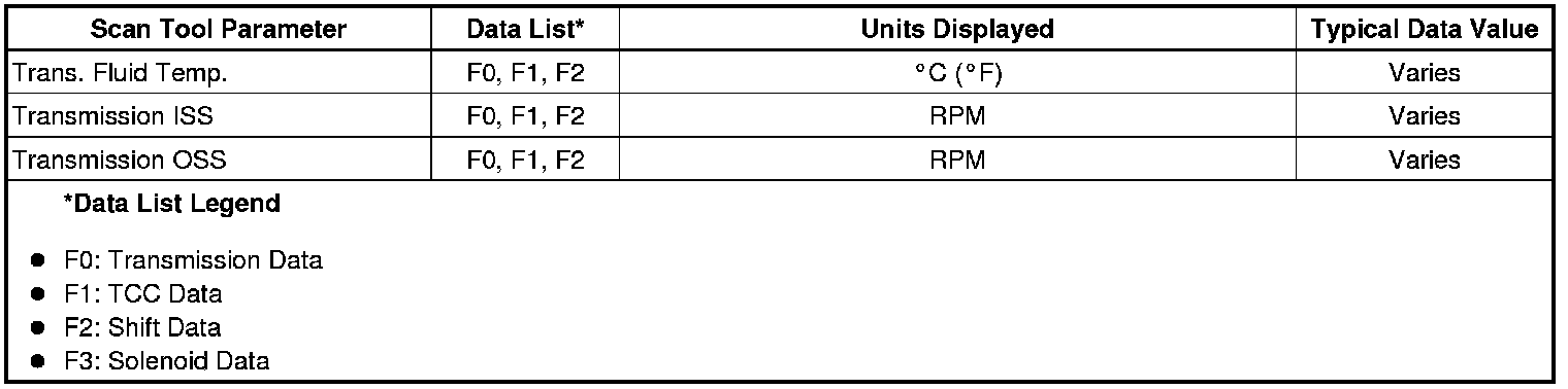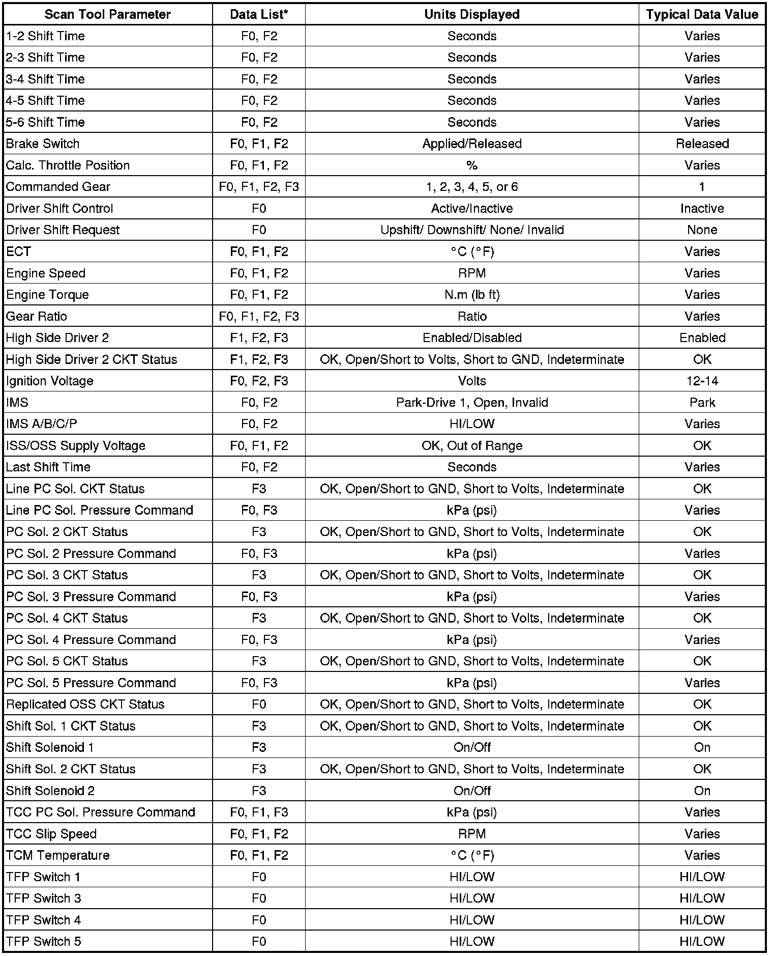 The parameters are listed below for diagnosing. If a scan tool displays other parameters, the values are not recommended by General Motors for use in diagnosis.