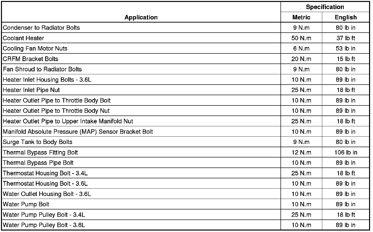 Fastener Tightening Specifications
