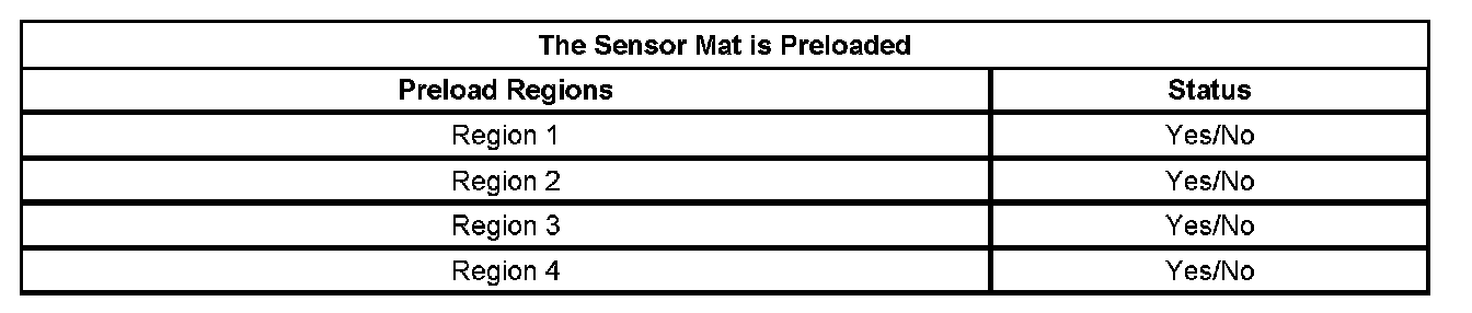 The PPS will fail the preload test when a region has detected a preload/pressure on it. If a preload test fails, the scan tool will display a chart as illustrated below. A Yes status indicates which region(s) have a preload condition. Refer to the chart below and the above illustration to identify the failed region.