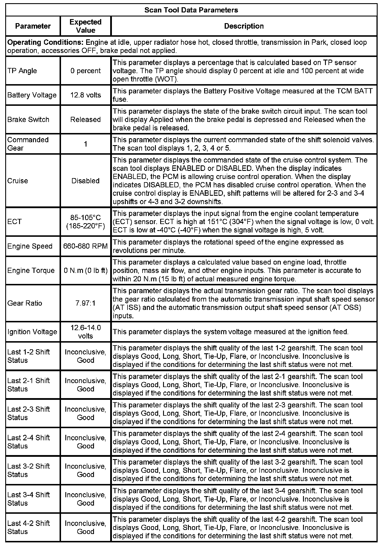 If all values are within the expected range described below, refer to Symptoms - Automatic Transmission for diagnosis. Symptom Related Diagnostic Procedures