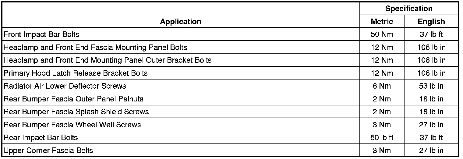 Bumper: Specifications