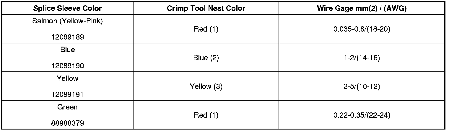 4. Select the proper DuraSeal splice sleeve according to the wire size. Refer to the above table at the beginning of the repair procedure for the color coding of the DuraSeal splice sleeves and the crimp tool nests.