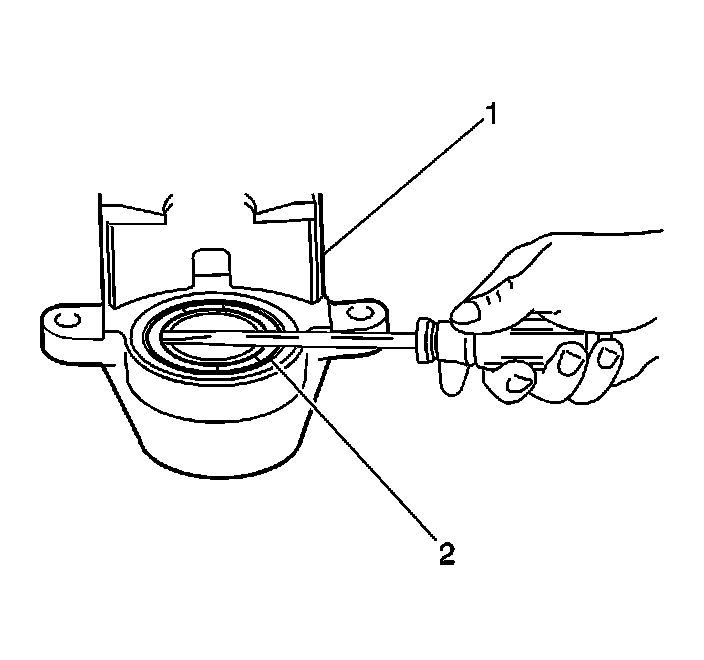 4. Use a flat-bladed tool to remove the brake caliper piston boot (2).