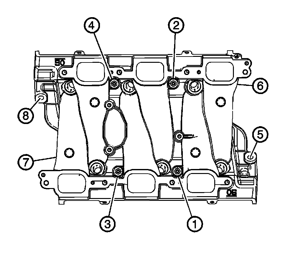 11. Tighten the lower intake manifold bolts in the sequence shown.