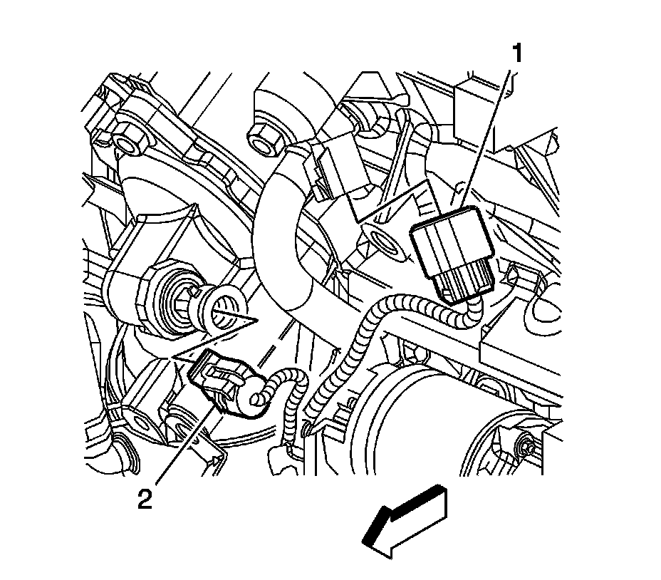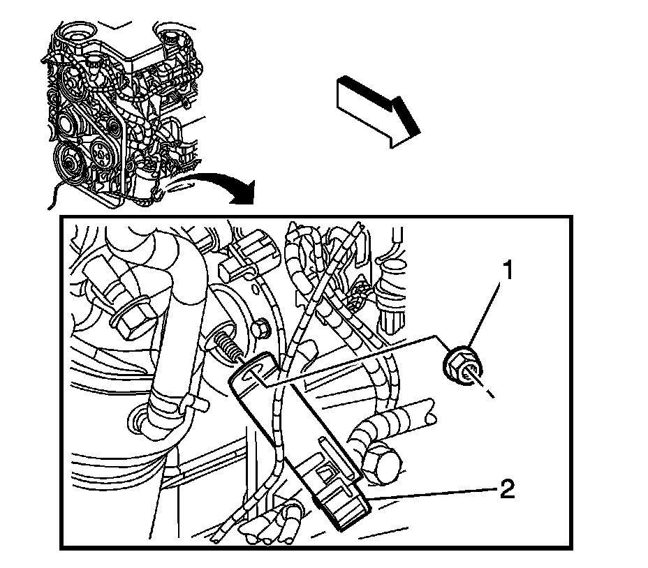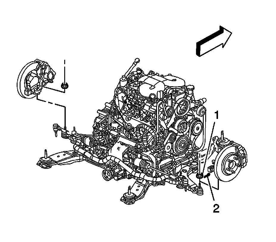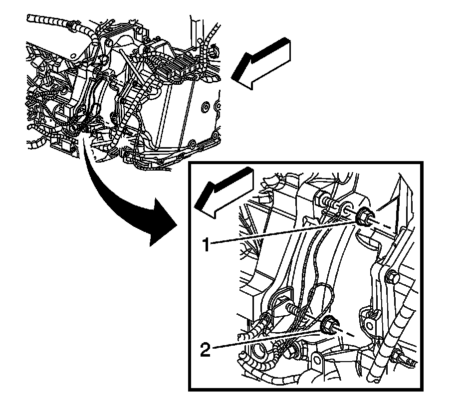 59. Install the engine harness ground nuts (1, 2) to the transaxle studs. Tighten the nuts to 25 Nm (18 lb ft).