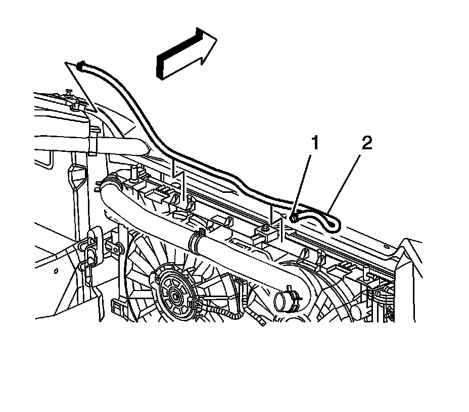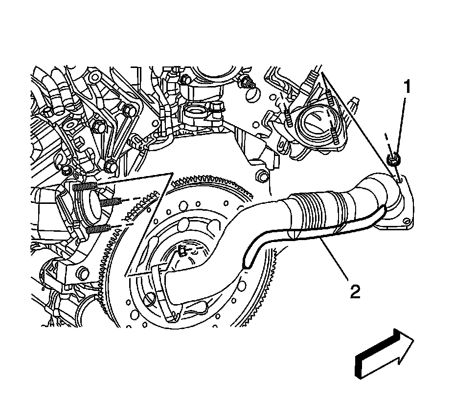 123. Install the coolant recovery reservoir hose (2) to the crossover.