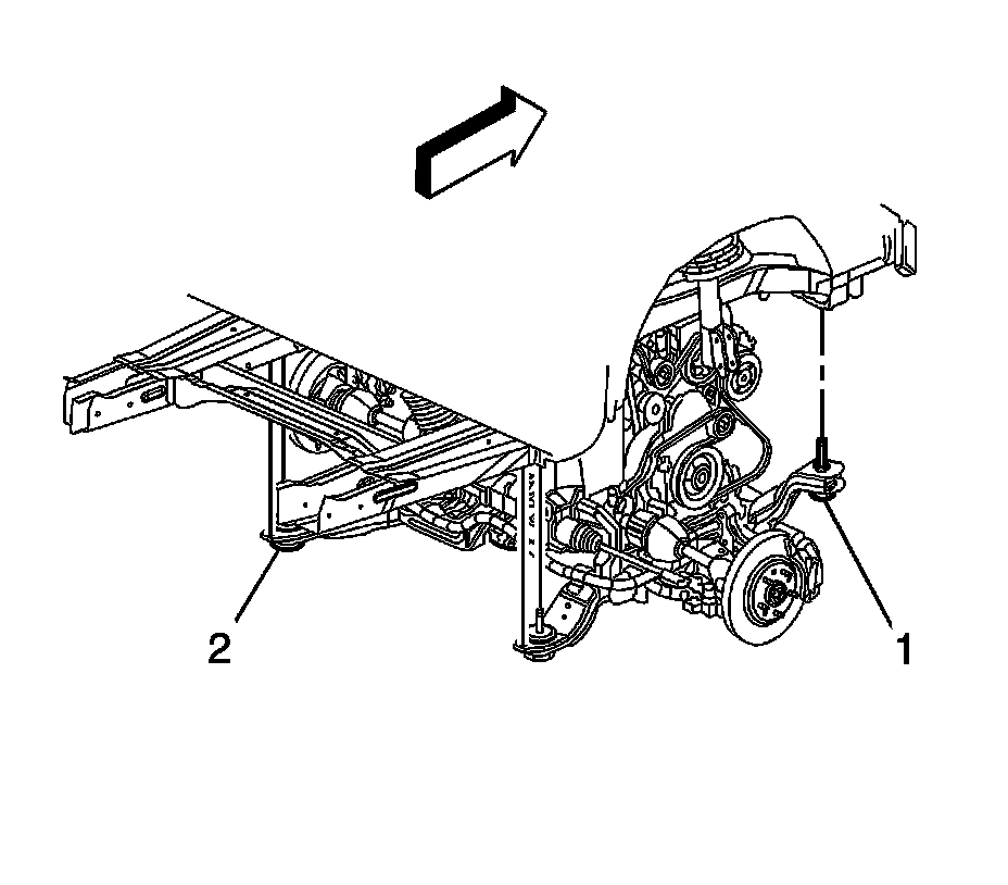 66. Install the front and rear frame bolts (1, 2).