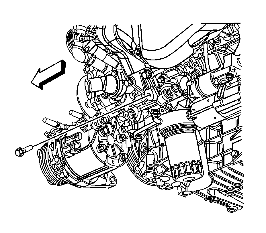90. Install the A/C compressor front bolt and nut and tighten to 50 Nm (37 lb ft).