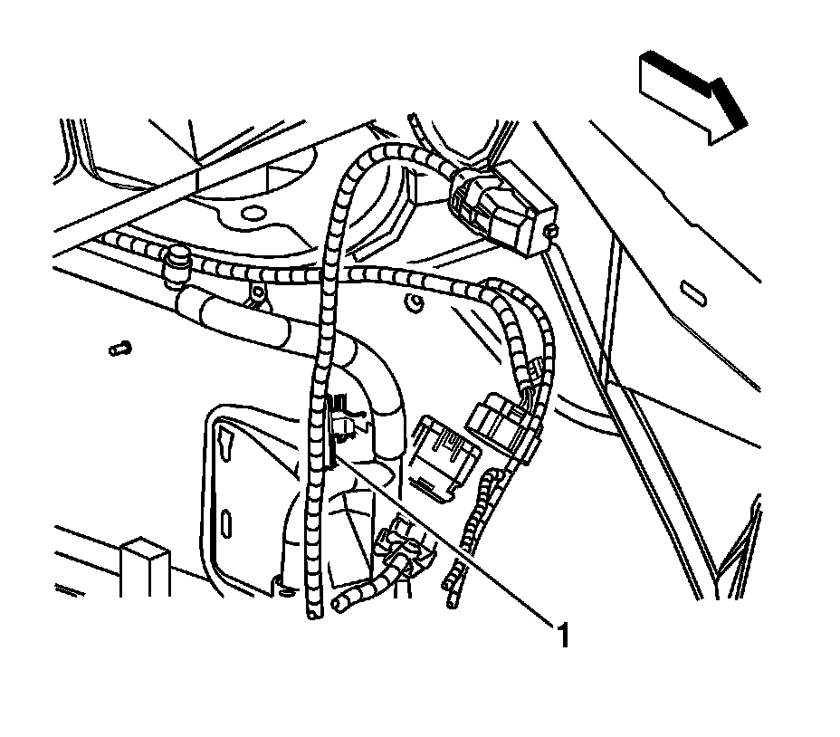 18. Install the engine harness clip (1) to the stud on the transaxle.