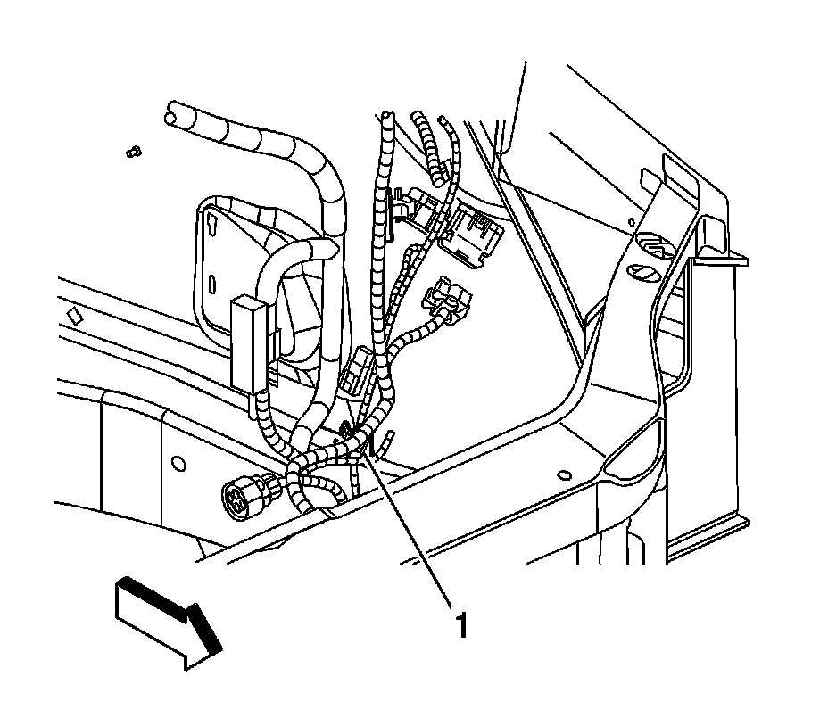 24. Install the engine harness clip (1) to the strut bracket.
